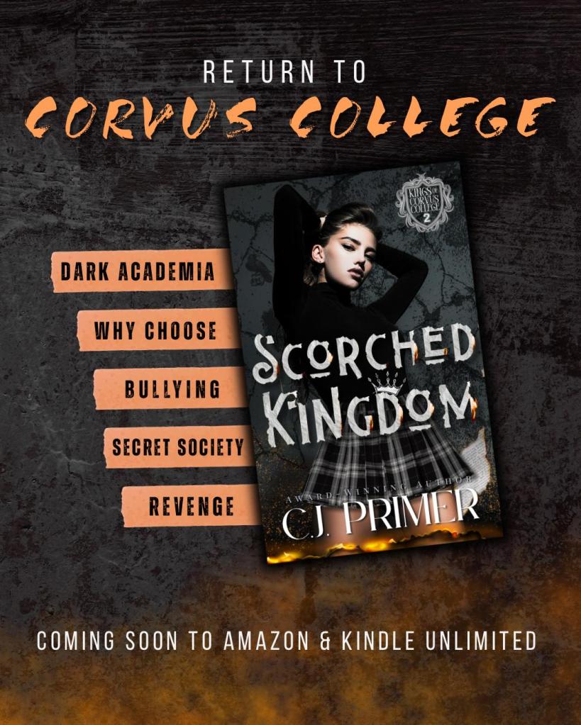Scorched Kingdom by C.J. Primer is book two in the Kings of Corvus College series and is available for preorder!
